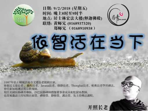 开照长老莅临古晋佛教居士林弘法- 《活在当下》